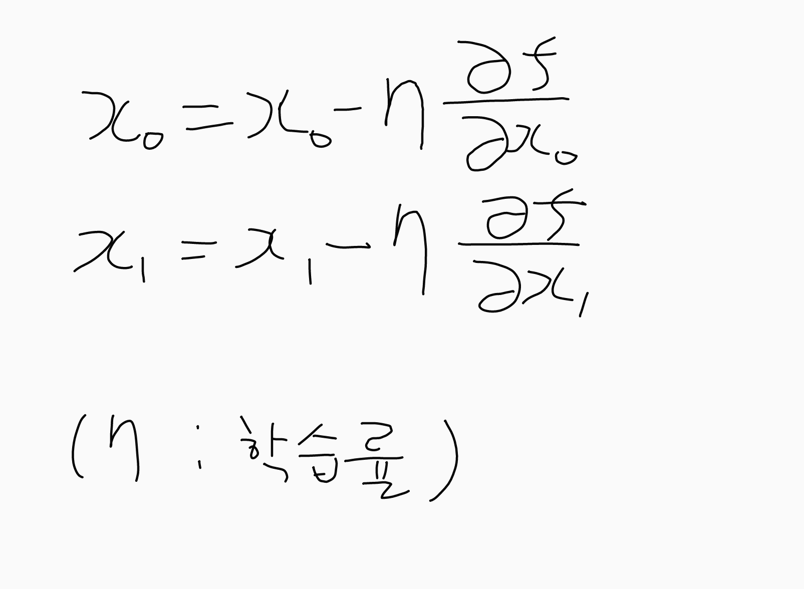 손실함수의 미분을 통해 매개변수를 조절해야하므로 변수 각각에 대한 미분을 해야합니다.