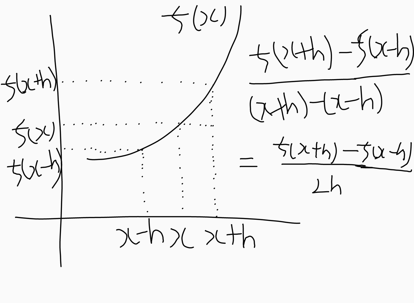 오차를 줄이기 위해 x를 중심으로 그 전후의 차분을 계산하는 중앙차분을 이용해서 하겠습니다.