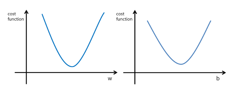 위의 손실함수들은 아래로 볼록한 모양을 갖습니다.